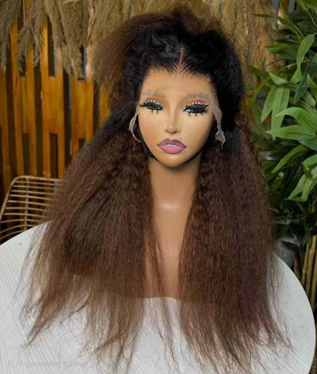 Kinky Straight Frontal available in Black and 1B/30 colors. Upgrade your look with our 26" length, which is perfect for a seamless blend with your natural hair.